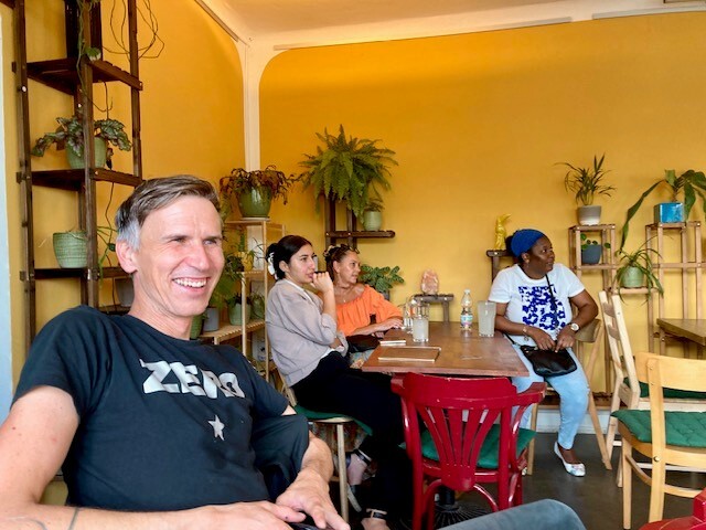 „Wir wollen doch alle die Welt etwas besser verlassen, als wir sie vorfinden“ – meint der international wild erfolgreiche Tom Lohner bei der letzten und sehr persönlichen Ausgabe von „Kirche im Gespräch“ vor der Sommerpause im gemütlichen Café Erde in Graz. Der für so unterschiedliche Kunden wie die k. u. k. Hofbäckerei Edegger-Tax, Almdudler, Lady Gaga oder die Weltausstellung des Jahres 2025 im japanischen Osaka tätige Pop-Art-Künstler sprach nicht nur über seinen Weg zum Erfolg, sondern auch über Demut: Es sei immer sein Ziel gewesen, von der Leidenschaft fürs künstlerische Tun leben zu können – dass dies nun auch kommerziell so gelinge, mache ihn dankbar, so der von Cyberpunk und postapokalyptischen, aber stets schwungvollen Motiven inspirierte und begeisterungsfähige Künstler. Auch in seinen ehemaligen Jobs als Barkeeper oder Bühnentechniker habe er stets mit Freude gearbeitet, so Lohner. „Alles gern machen!“ und entgegen der oft pessimistischen österreichischen Mentalität zu „manifestieren“, sprich: sich vorzustellen, dass man sein Ziel schaffen wird – das habe er in seiner Karriere besonders beherzigt. So habe er vor seinem Durchbruch in London 427 (!) erfolglose Bewerbungen im kreativen Feld des Grafikdesigns verschickt und nie von seiner Passion für die Kunst und vom Glauben an sich abgelassen: „Wenn du etwas mit Leidenschaft machst und ihr folgst, dann wirst du an deine Ziele kommen“.
