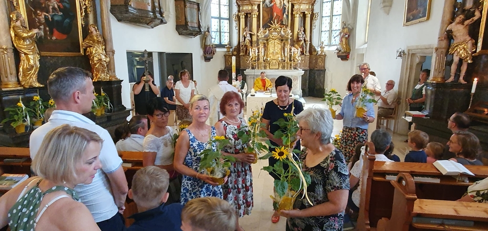 Am Sonntag darauf, dem 18. August, erfüllte feiner Kräuterbüschelduft den Altarraum unserer Kirche. Feierlich segnete Pfarrer Claudiu Budau am Ende der heiligen Messe alle Kräuter- und Blumensträußchen, auch spendete er zusätzlich den Wettersegen.