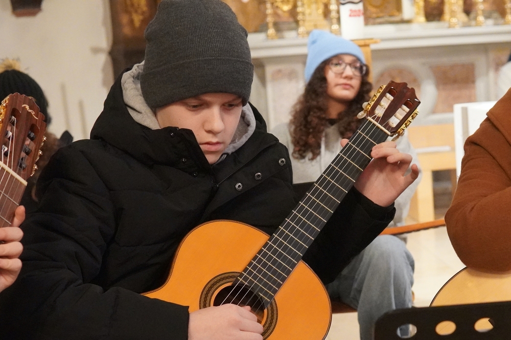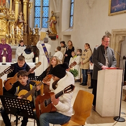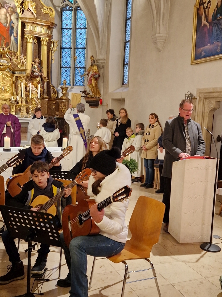 Das Gitarrenensemble der Musikschule Premstätten geleitete uns sehr stimmungsvoll durch den Gottesdienst am 1. Adventsonntag, den Vikar Norbert Glaser und Diakon Michi Zepf mit uns feierten.