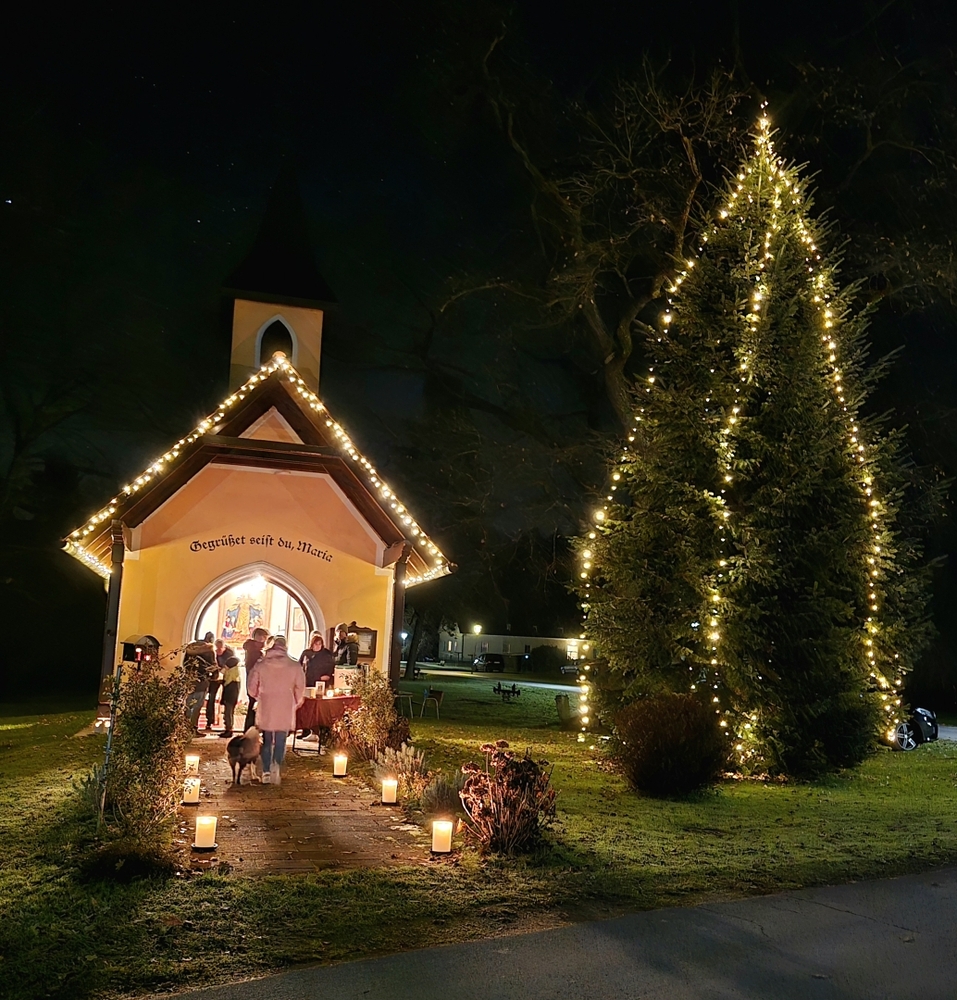 Bei der Kapelle-Kaiserwald verbrachte man nach der stimmungsvollen Adventkranzsegnung noch einige Zeit für ein genüssliches Beisammensein. Vizebürgermeisterin Ingrid Baumhackl verwöhnte alle Gäste mit Glühwein, Tee und Lebkuchen. Herzlichen Dank dafür!