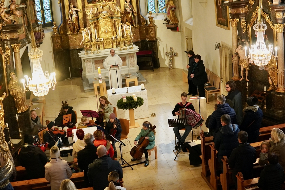 Musikalisch umrahmte wieder die Musikschule Premstätten die Feier. Volksmusik und Streichermusik erfüllten die Kirche mit freudvollen vorweihnachtlichen Klängen.