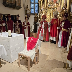 Nach altem Ritus segnete Diakon Michi Zepf nach dem Schlusssegen noch das „Dreikönigswasser“ und das Salz, welches in kleinen Fläschchen mitgenommen werden durfte. Die Allerheiligen-Litanei wurde von Johannes Chum vorgetragen.