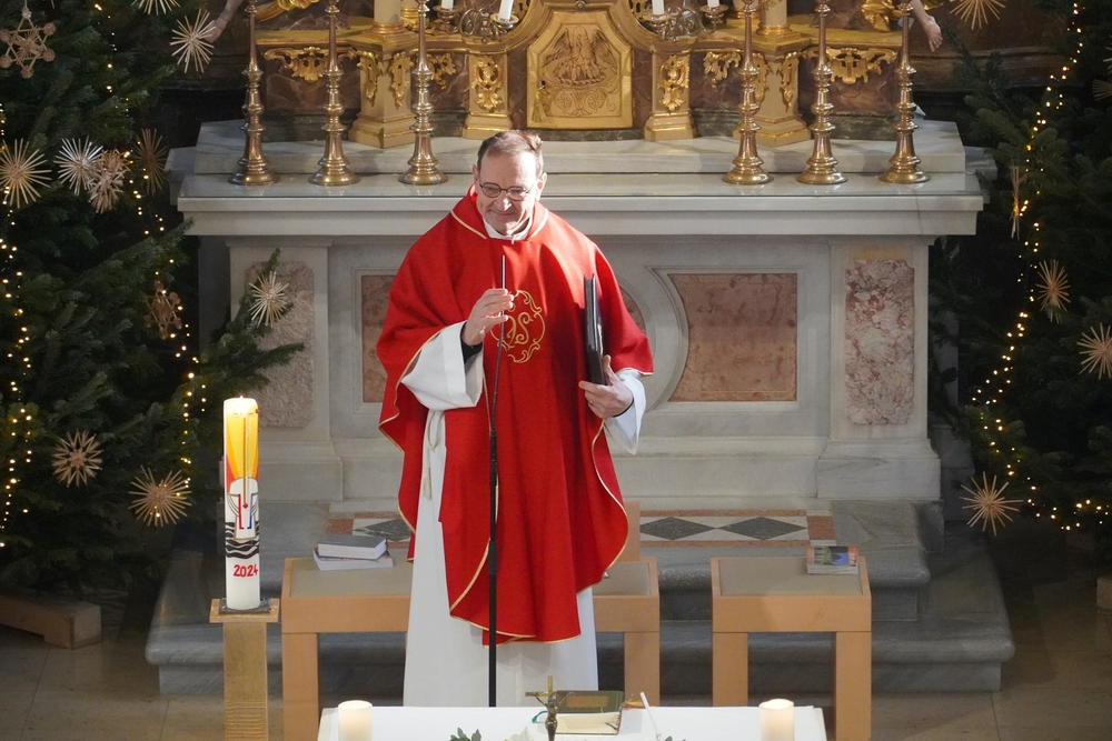 In der weihnachtlich geschmückten Kirche feierten dann Pfarrer Claudiu Budau und Diakon Michi Zepf in großer Gemeinschaft die heilige Messe.