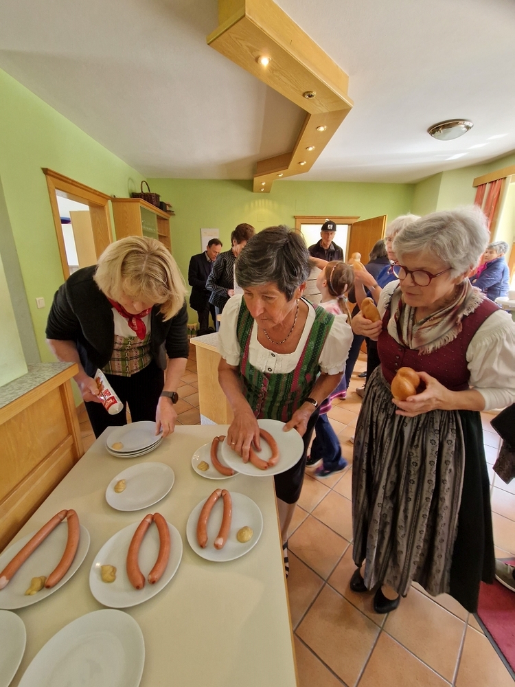In netter Gemeinschaft genossen die Seniorinnen und Senioren dann die Würstel-Jause sowie Kuchen und Kaffee. Dazu sorgte Anton Ruprecht auf der Ziehharmonika für angenehme musikalische Untermalung.