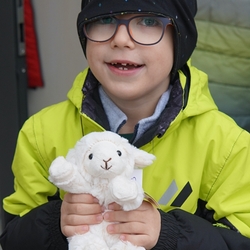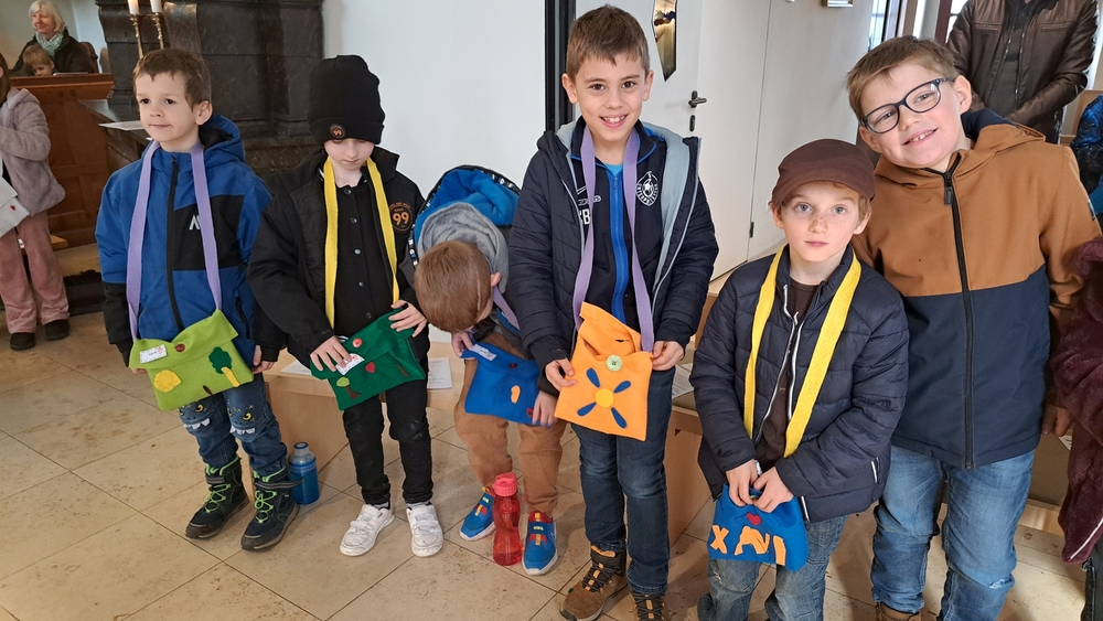 Zur besonderen Botschaft dieser heiligen Messe und zur besonderen musikalischen Gestaltung kam noch ein besonderes Danke-Sagen. Einige Minis bekamen für ihre treuen Mini-Dienste Auszeichnungen, die Anja Asel überreichte. Die drei neuen Minis, Miriam, Victor und Maximilian, erhielten als „Antrittsgeschenk“ das Mini-Maskottchen Fridolin, ein kuscheliges Schäfchen.