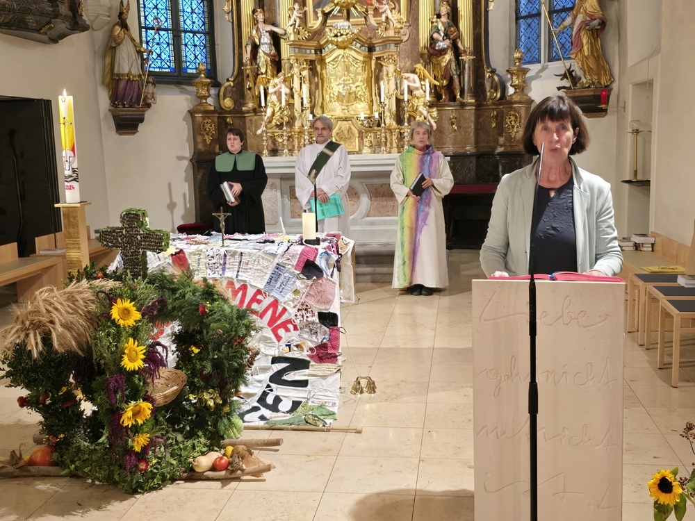 In ihrer Predigt erläuterte Pastorin Esther Handschin, bezugnehmend auf das Evangelium (Lk, 12, 15-21), was „Reichtum vor Gott“ heißen kann. Einige Impulse: Gemeinschaft statt Egoismus, Solidarität für die Ärmsten, Verantwortung für die Schöpfung und Dankbarkeit für alles, was uns geschenkt wird.